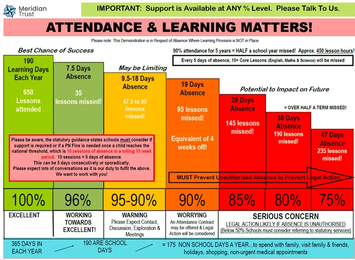 We hope you find the following information useful to assist your understanding and help with decision making in respect of your child’s absences from school, should they occur. We would like to take this opportunity to thank you in anticipation of your support to improve attendance levels and progress.